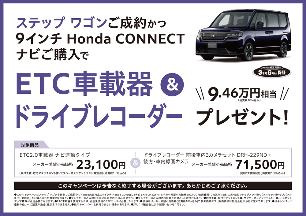 対象車種がSTEP WGN e:HEV AIRのキャンペーン